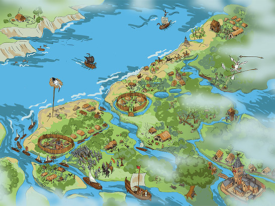 Illustratie voor een digitale schoolplaat:"Hoe zag Holland er uit rond het jaar 1018?"