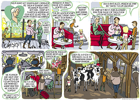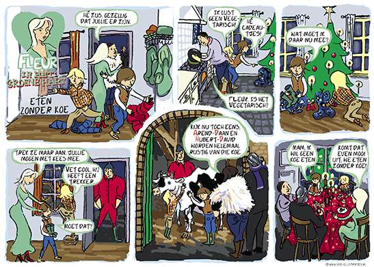 Bedenken en tekenen van een strip rondom de feestdagen. De neefjes van Fleur worden geintroduceerd en gaan knuffelen met de koeien.Techniek
